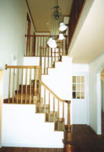 リビング、玄関に大きな吹抜を持ち、とても明るく収納の多い住宅です。施主様のこだわりで、キッチン、洗面、食器棚等輸入部材を使用し、とても満足して頂きました。